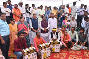 मंत्री  वर्मा ने कृषि विभाग की ओर से 15 हितग्राहियों को मसूर मिनीकिट वितरण, 9 हितग्राहियों को स्प्रेयर पंप वितरण, पशु चिकित्सा विभाग की ओर से 8 हितग्राहियों को चेक वितरण, चिकित्सा एवं स्वास्थ्य विभाग की ओर से 10 हितग्राहियों को पोषण कीट का वितरण, श्रम विभाग की ओर से 4 हितग्राहियों को राशि वितरित किया।