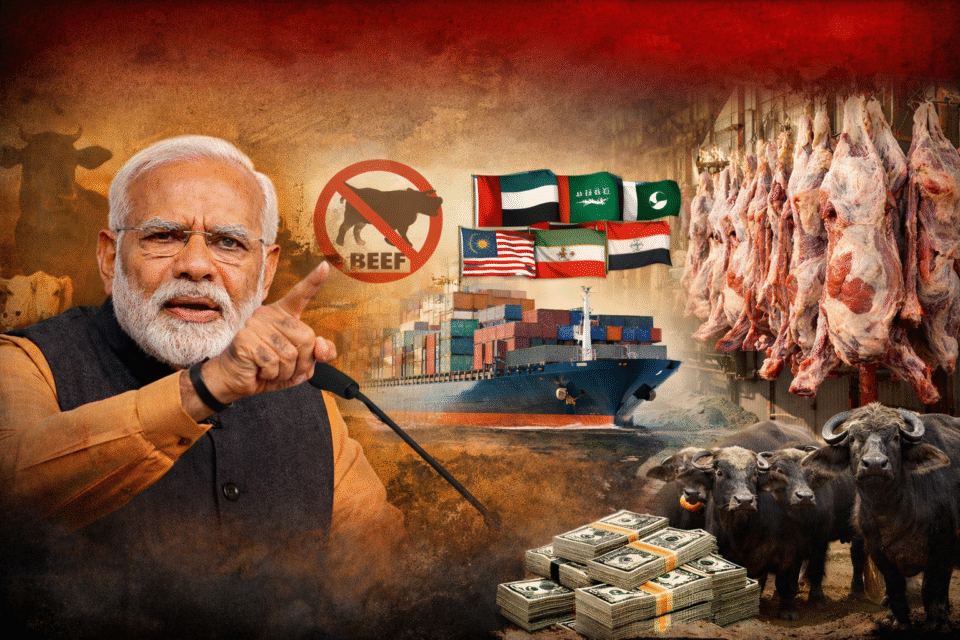 भारत में बीफ़ को लेकर राजनीति कोई नई नहीं है, लेकिन हालिया घटनाक्रम ने इस बहस को एक बार फिर उबाल पर ला दिया है। एक तरफ़ देश के कई राज्यों में बीफ़ बेचने, खाने और गोवंश से जुड़े मामलों में सख़्त प्रतिबंध लगाए जा रहे हैं, वहीं दूसरी तरफ़ नरेंद्र मोदी सरकार विदेशी मुस्लिम देशों को हलाल-प्रमाणित बीफ़ और मांस निर्यात को खुलकर बढ़ावा दे रही है। यही विरोधाभास अब सरकार की नीयत और नीति दोनों पर गंभीर सवाल खड़े कर रहा है।